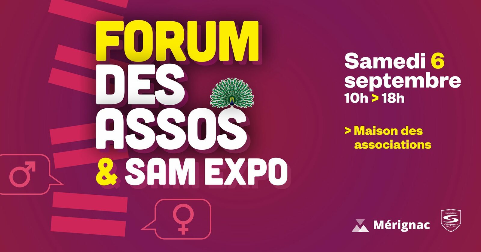 Samedi prochain 6 septembre, et comme chaque année, notre Club aura un stand au Forum des Assos de la ville de Mérignac, qui se déroule autour de la Maison des Associations (à côté du Stade Robert Brettes) de 10h à 18h… N’hésitez pas venir, pour donner un p’tit coup de main à tenir le stand ou à conseiller nos éventuels futur adhérents.